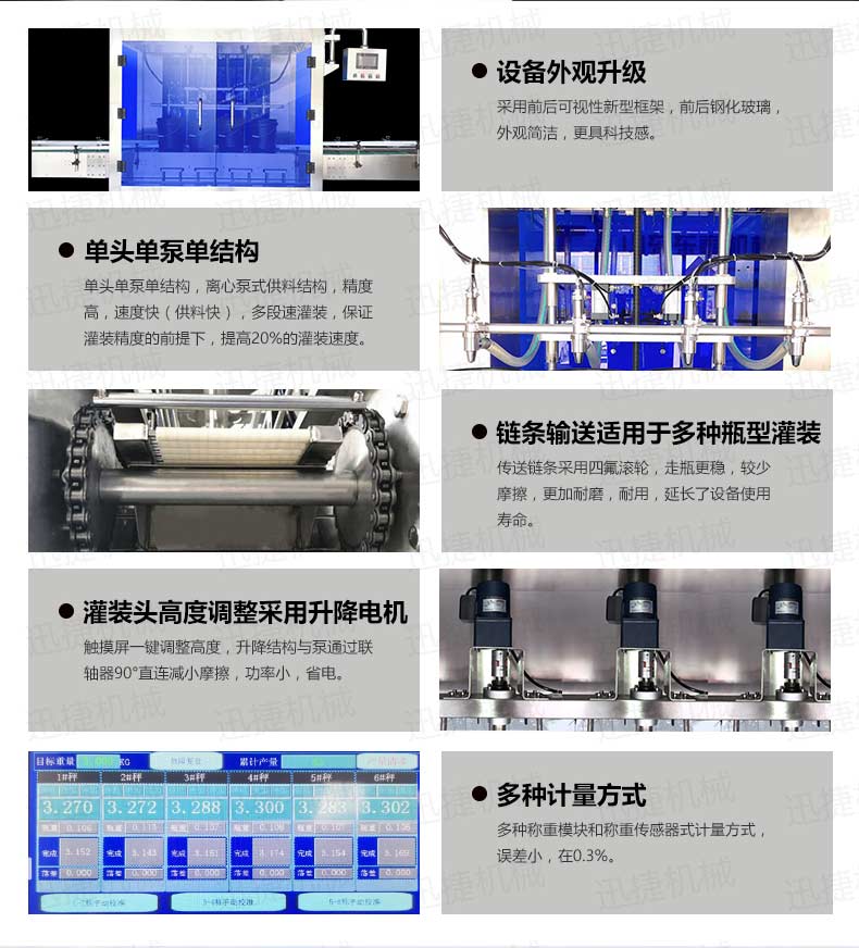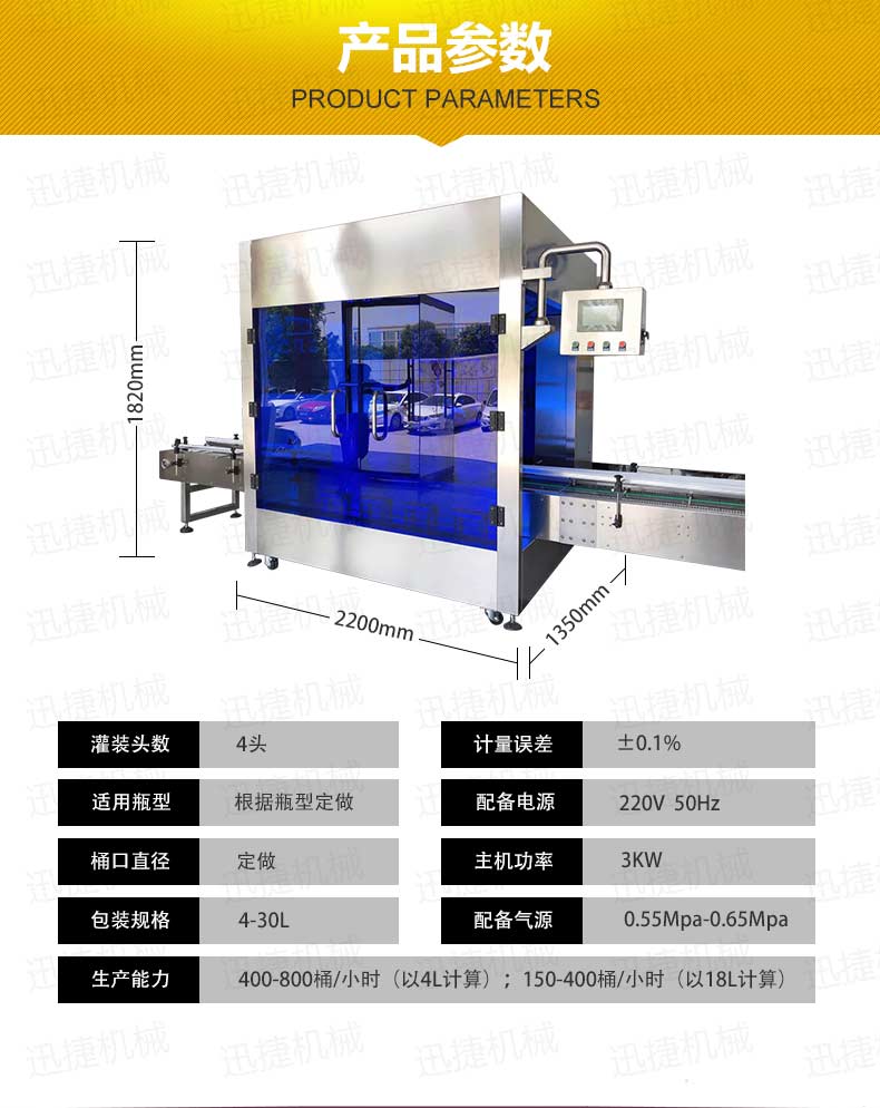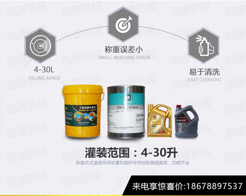 機(jī)油灌裝機(jī)適用于對(duì)4kg-25kg汽車(chē)用品類(lèi)產(chǎn)品:潤(rùn)滑油、防凍液、車(chē)用尿素等液體灌裝。自動(dòng)完成計(jì)數(shù)進(jìn)瓶、計(jì)重量灌裝、輸送出瓶等一系列操作。 特別適用于潤(rùn)滑油、水劑、食用油的定量灌裝,是食品,醫(yī)藥,化妝品以及精細(xì)化工等行業(yè)的理想灌裝機(jī)。本機(jī)采用可編程控制器(PLC)、高速工控組態(tài)軟件進(jìn)行實(shí)時(shí)監(jiān)控的控制,使用調(diào)節(jié)方便。整機(jī)按GMP標(biāo)準(zhǔn)要求制作,各管路連接采用快裝方式,拆卸清洗方便,與物料接觸部位及外露部位均采用不銹鋼制造。整機(jī)安全、環(huán)保、安全、美觀、能適應(yīng)各種不同環(huán)境工作。