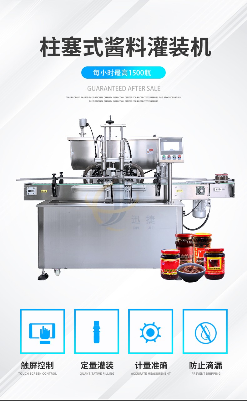 全自動(dòng)雙頭醬料灌裝機(jī)兼容6種瓶型,容量范圍內(nèi)可兼容多種瓶型的灌裝,一鍵式操作,開(kāi)機(jī)即能使用。更換瓶型無(wú)需更換配件。