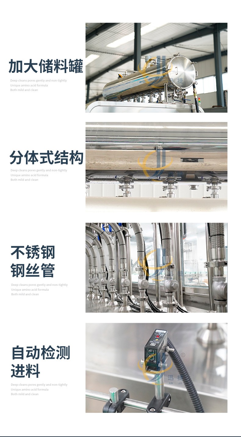 全自動液體灌裝機用于灌裝飲料、果汁,牛奶,酒精,消毒液,口服液,洗衣液等液體,廣泛應(yīng)用于食品,化工,醫(yī)療等行業(yè),灌裝精密,功能強,實用性高的灌裝機械。