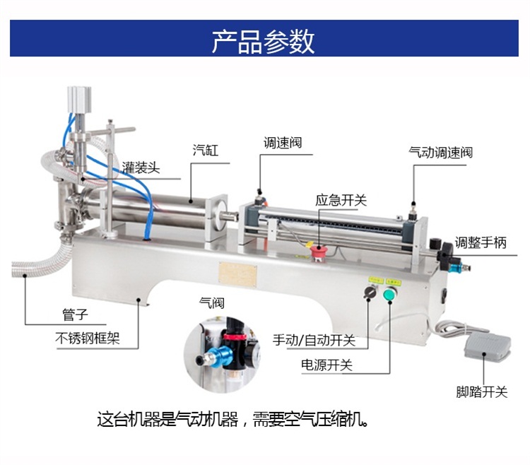 小型半自動單頭液體灌裝機設備細節(jié):